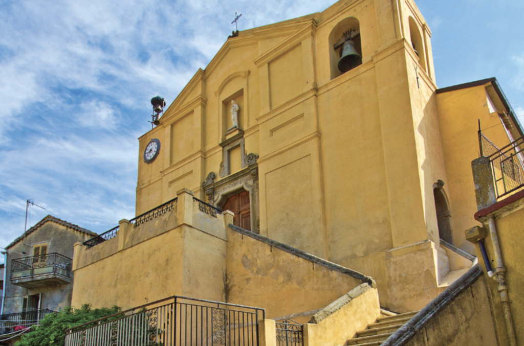 The Mother Church, located on a hillock overlooking the town, is connected to the square by a striking staircase made of granite, along with the elegant portal, in 1759 by Serbian masters. The interior of Santa Maria del Monte is elegantly decorated in late Baroque forms although the proportions appear somewhat syncopated due to the absence of a clerestory. The large central space of the vault was frescoed in 1805 by Giovanni Spadea, a painter from Catanzaro, who depicted there the Virgin Mary of the Mount between Saints Rocco and Sosthenes. It is plausible that the work was made almost as a votive offering after the 1783 earthquake. On the apse wall, behind the 1840 high altar, is enclosed in a later frame the pictorial altarpiece with Our Lady of the Mount, St. Sosthenes and St. John the Baptist, signed by Borgia painter Francesco Basile in 1787. Several wooden statues are preserved among which those of the Protectors, St. Roch and St. Sosthenes, carved in Naples by master Nicola Del Vecchio and dated 1817, deserve special mention. Both images are the protagonists of the striking feast celebrated on August 16: the faithful, very often barefoot, reach the Mother Church where they wear a mozzetta as a sign of penitence and entrustment to the patron saints. They tie to a stick the anthropomorphic wax ex voto depicting the body part for which they asked for mercy. Along with the object are often offerings that are left in the church at the end of the ritual. The long procession through the streets of the village begins, whose meager yet striking dimensions dictate the carrying of the two statues on the shoulders. Arriving at the lower part of the village where the road is driveway, St. Sosthenes and St. Rochus are laid on a wagon engulfed in wreaths pulled by a pair of oxen for another shorter ride but with a strong symbolic value obviously linked to the land and peasant traditions.